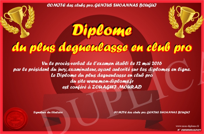 Envoyez par email votre Diplôme du plus degueulasse en club pro personalisé