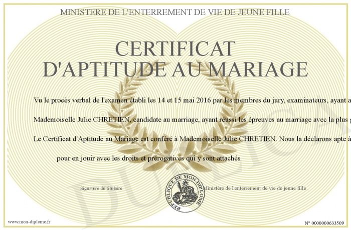 Envoyez par email votre certificat d'aptitude au mariage personalisé