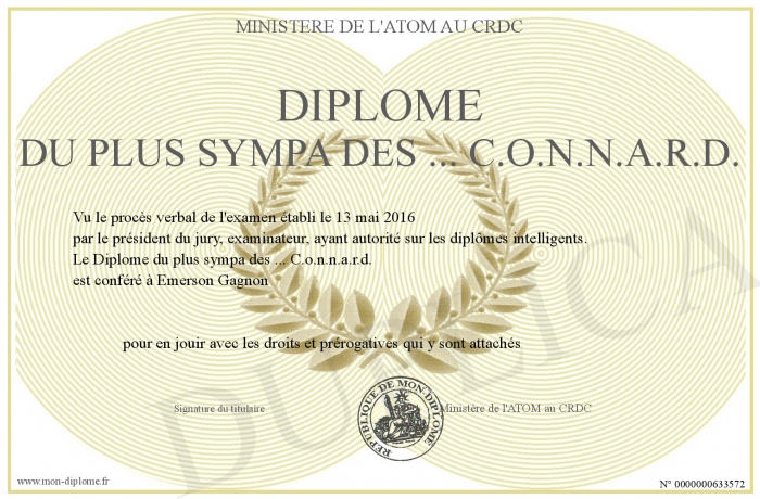 Envoyez par email votre Diplôme du plus sympa des ... C.o.n.n.a.r.d. personalisé