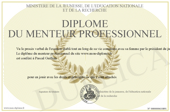 Envoyez par email votre Diplôme du menteur professionnel personalisé