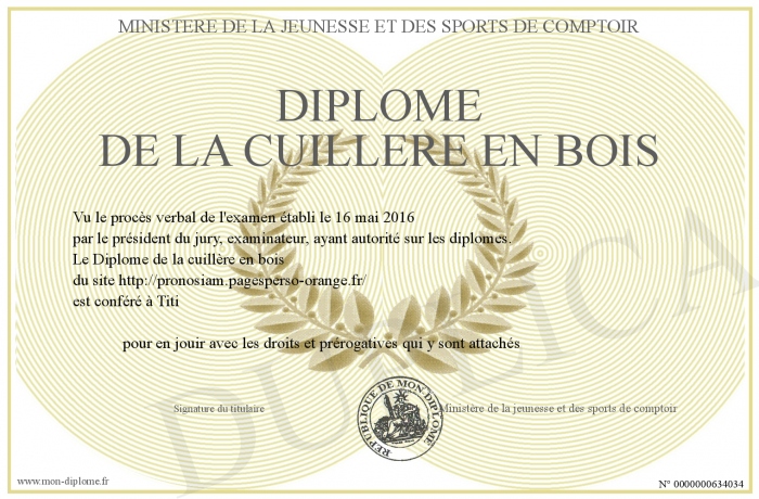Envoyez par email votre Diplôme de la cuillère en bois personalisé