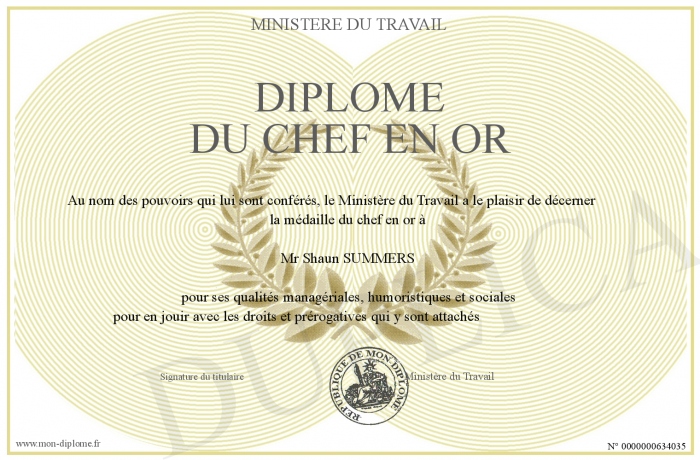 Envoyez par email votre Diplôme du chef en or personalisé