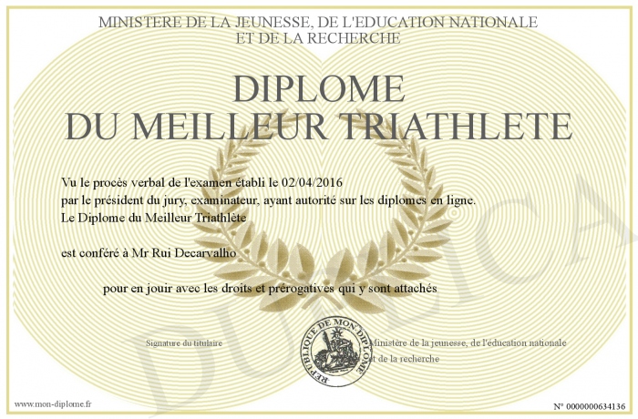 Envoyez par email votre Diplôme du Meilleur Triathlète personalisé