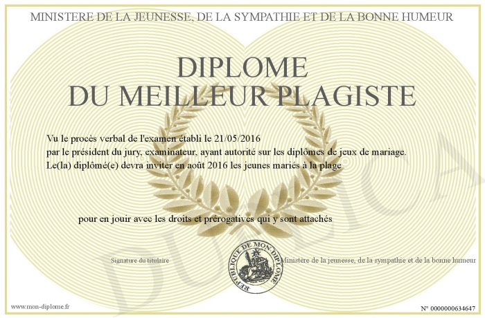 Envoyez par email votre Diplome du meilleur plagiste personalisé