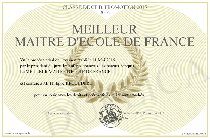 Envoyez par email votre MEILLEUR MAITRE D'ECOLE DE FRANCE personalisé