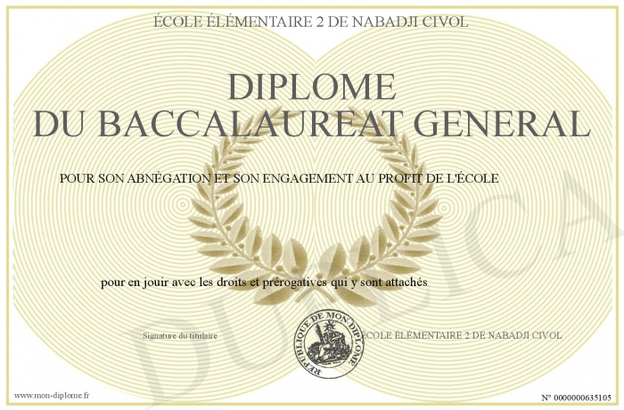 Envoyez par email votre Diplôme du baccalaureat général personalisé