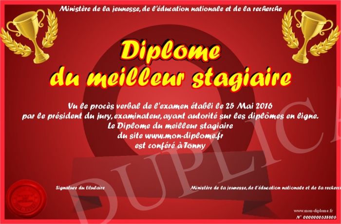 Envoyez par email votre Diplôme du meilleur stagiaire personalisé