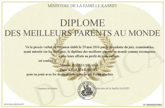 Envoyez par email votre Diplôme des meilleurs parents au monde personalisé