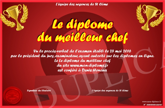 Envoyez par email votre Le diplôme du meilleur chef personalisé