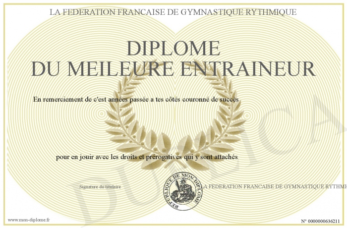Envoyez par email votre Diplôme du meileure entraineur personalisé