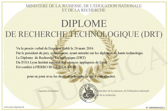 Envoyez par email votre Diplôme de Recherche Technologique (DRT) personalisé