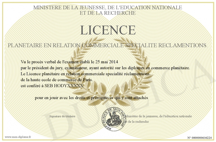 Envoyez par email votre Licence planétaire en relation commerciale specialité réclamentions. personalisé