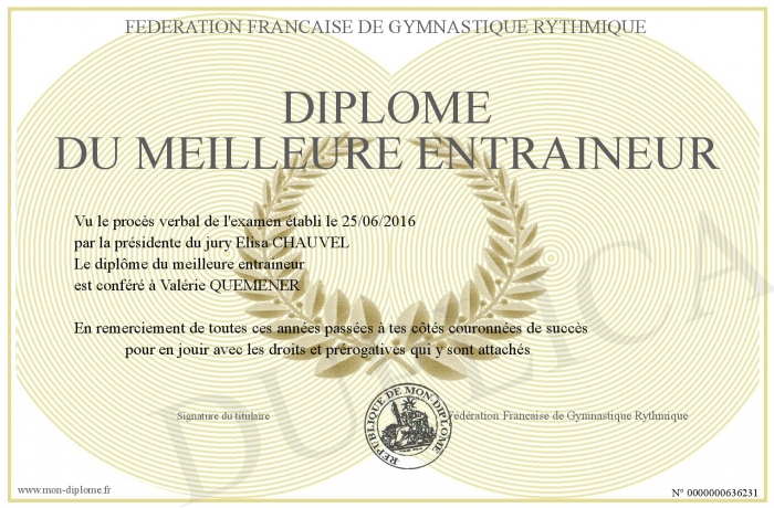 Envoyez par email votre Diplôme du meilleure entraineur personalisé