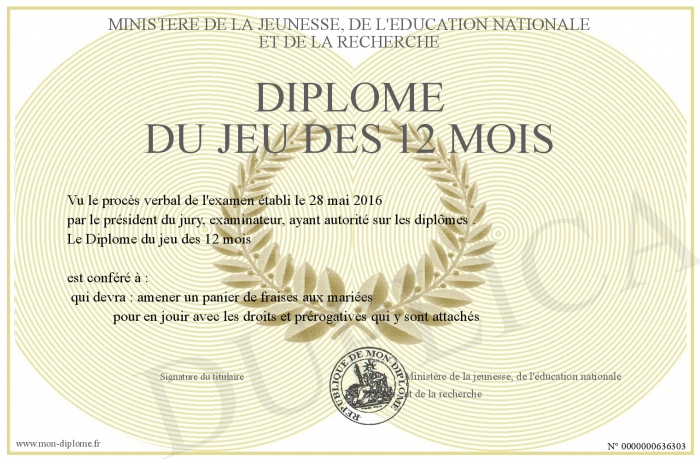 Envoyez par email votre Diplôme du jeu des 12 mois personalisé