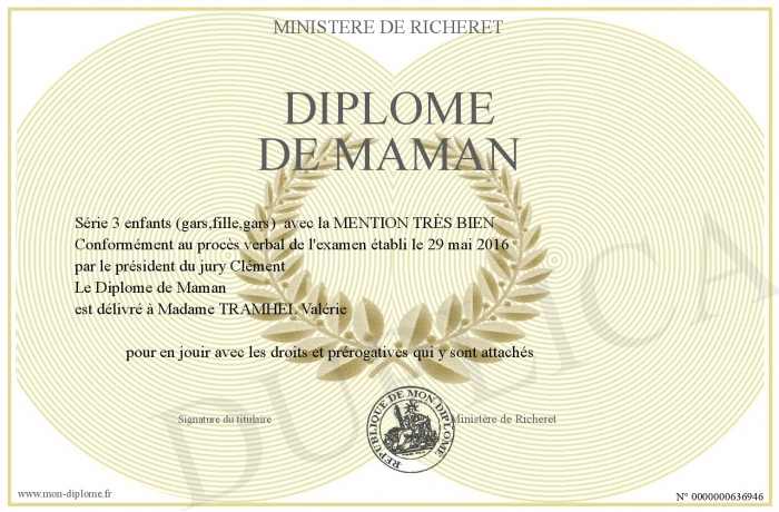 Envoyez par email votre Diplôme de Maman personalisé