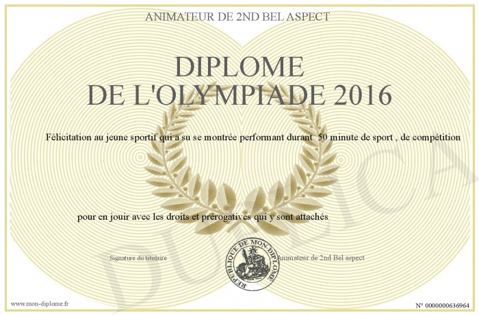 Envoyez par email votre Diplôme De L'olympiade 2016 personalisé