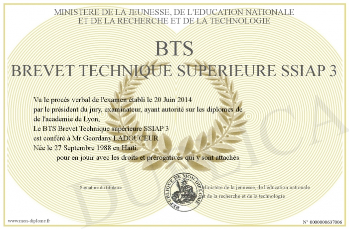 Envoyez par email votre BTS Brevet Technique superieure SSIAP 3 personalisé