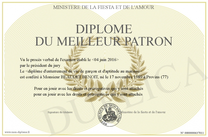 Envoyez par email votre Diplome du meilleur patron personalisé