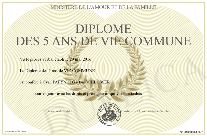Envoyez par email votre Diplôme des 5 ans de VIE COMMUNE personalisé