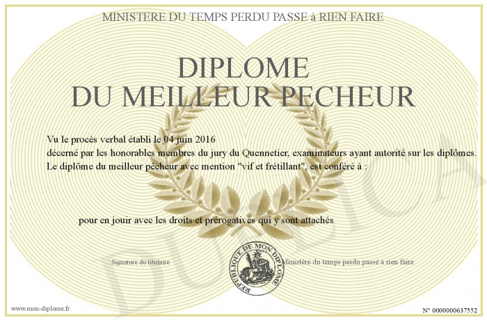 Envoyez par email votre Diplôme du meilleur pecheur personalisé