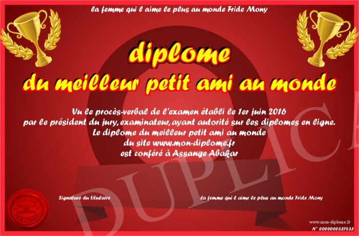 Envoyez par email votre diplôme du meilleur petit ami au monde personalisé