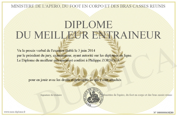 Envoyez par email votre Diplôme du meilleur entraineur personalisé