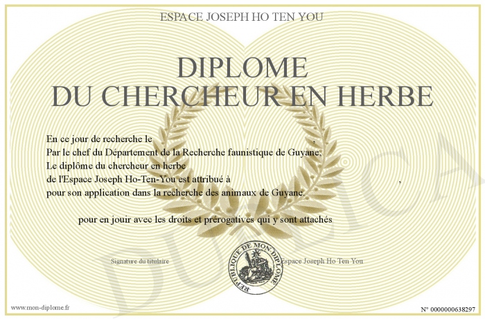 Envoyez par email votre Diplôme du chercheur en herbe personalisé