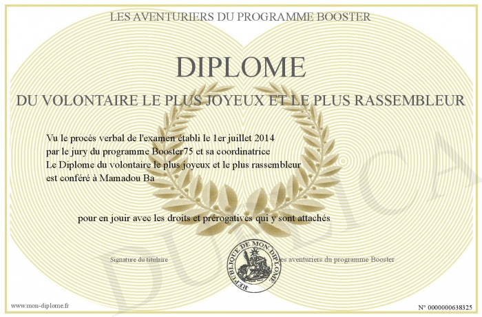 Envoyez par email votre Diplôme du volontaire le plus joyeux et le plus rassembleur personalisé