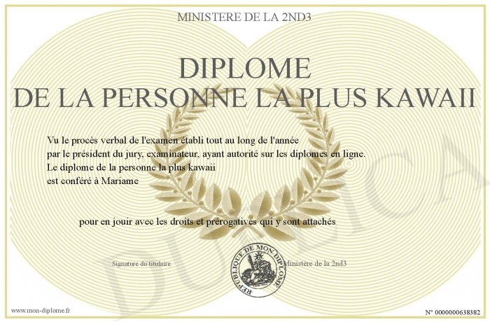 Envoyez par email votre Diplôme de la personne la plus Kawaii personalisé
