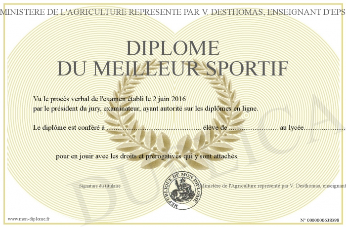 Envoyez par email votre Diplôme du meilleur sportif personalisé