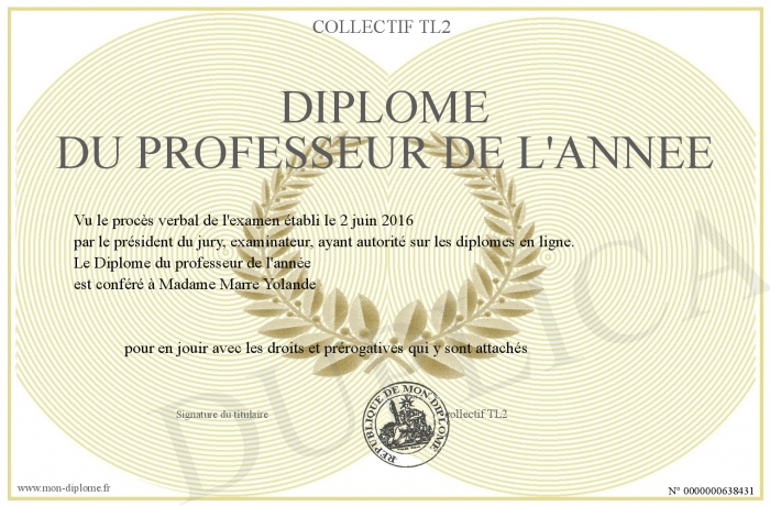 Envoyez par email votre Diplôme du professeur de l'année personalisé