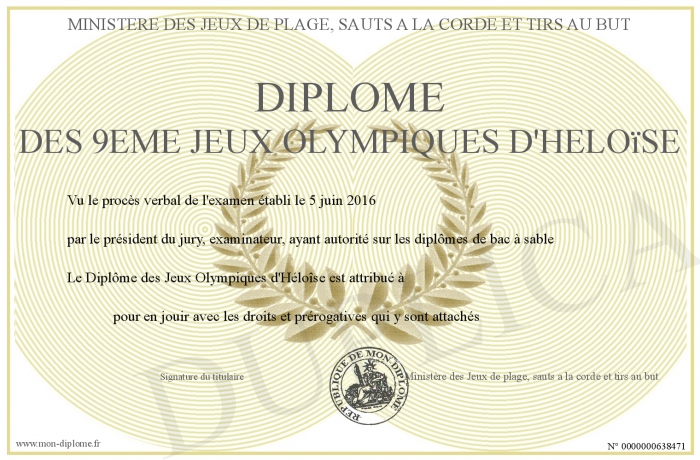 Envoyez par email votre Diplôme des 9ème Jeux Olympiques d'Héloïse personalisé
