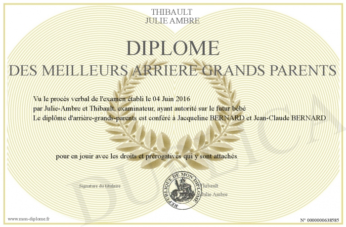 Envoyez par email votre Diplôme des meilleurs Arrière Grands Parents personalisé