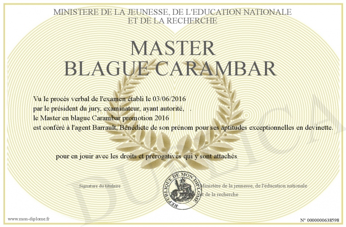 Envoyez par email votre Master blague carambar personalisé