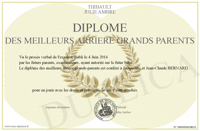 Envoyez par email votre Diplôme des meilleurs arrière grands parents personalisé
