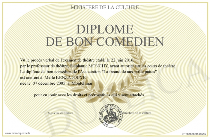 Envoyez par email votre Diplôme de bon comédien personalisé