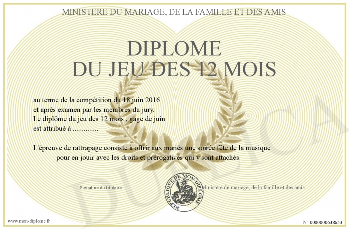 • Diplôme du jeu des 12 mois