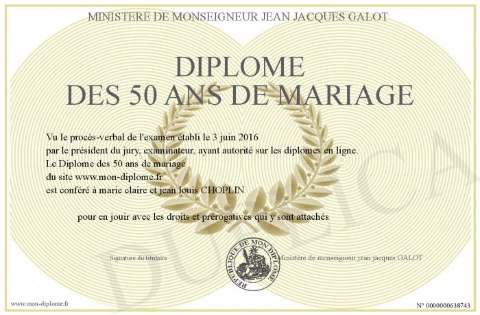 Envoyez par email votre Diplôme des 50 ans de mariage personalisé