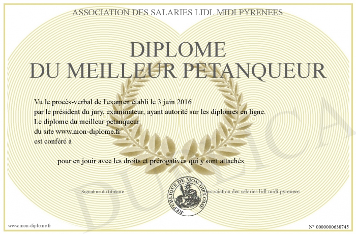 Envoyez par email votre diplome du meilleur petanqueur personalisé