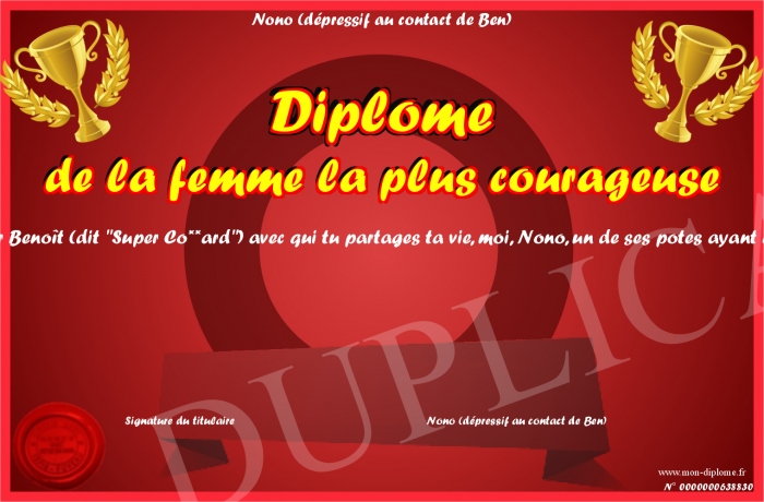 Envoyez par email votre Diplôme de la femme la plus courageuse personalisé