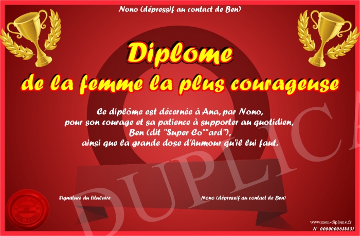 Envoyez par email votre Diplôme de la femme la plus courageuse personalisé