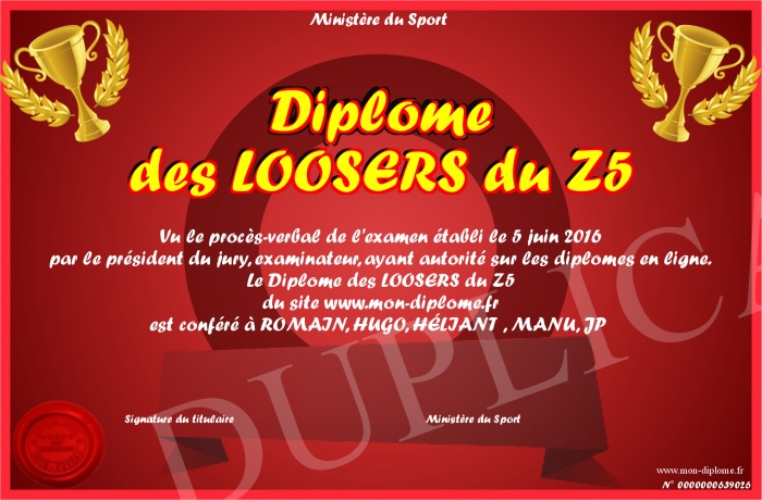 Envoyez par email votre Diplôme des LOOSERS du Z5 personalisé