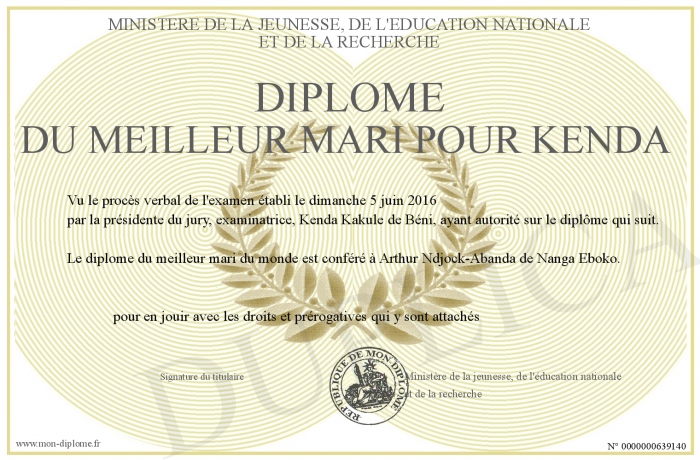 Envoyez par email votre Diplôme du meilleur mari pour Kenda personalisé