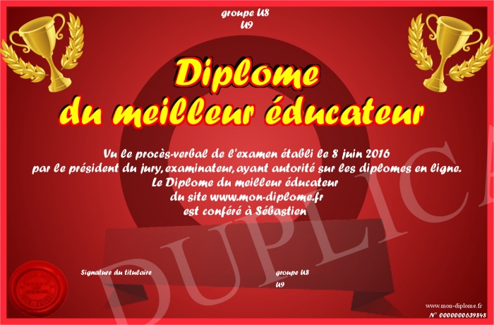 Envoyez par email votre Diplôme du meilleur éducateur personalisé