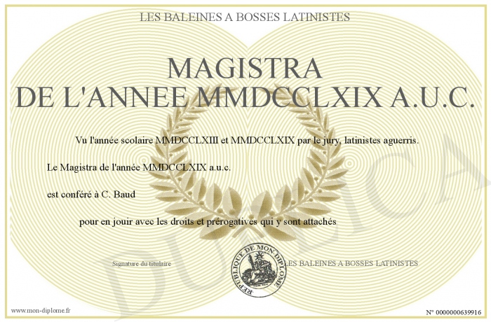 Envoyez par email votre Magistra de l'année MMDCCLXIX a.u.c. personalisé