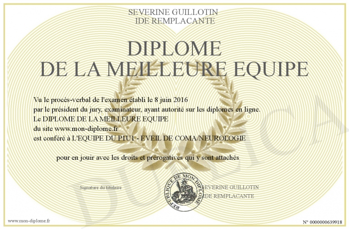 Envoyez par email votre DIPLOME DE LA MEILLEURE EQUIPE personalisé