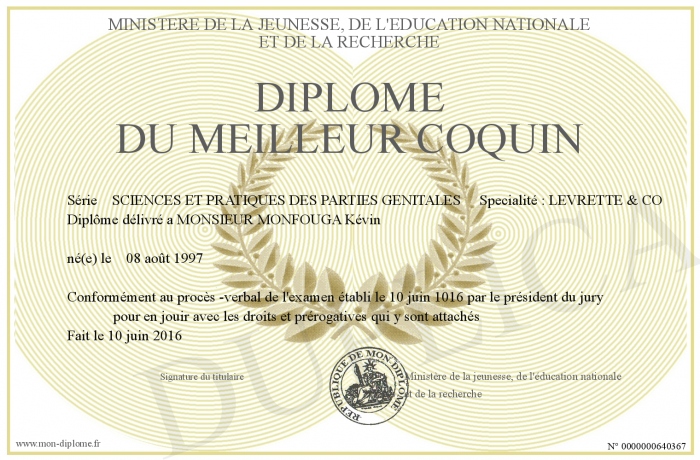 Envoyez par email votre Diplôme du meilleur coquin personalisé