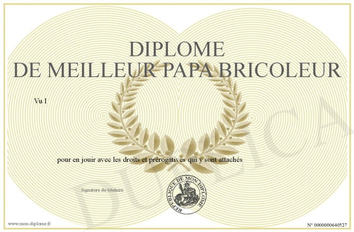 Envoyez par email votre Diplôme de meilleur papa bricoleur personalisé