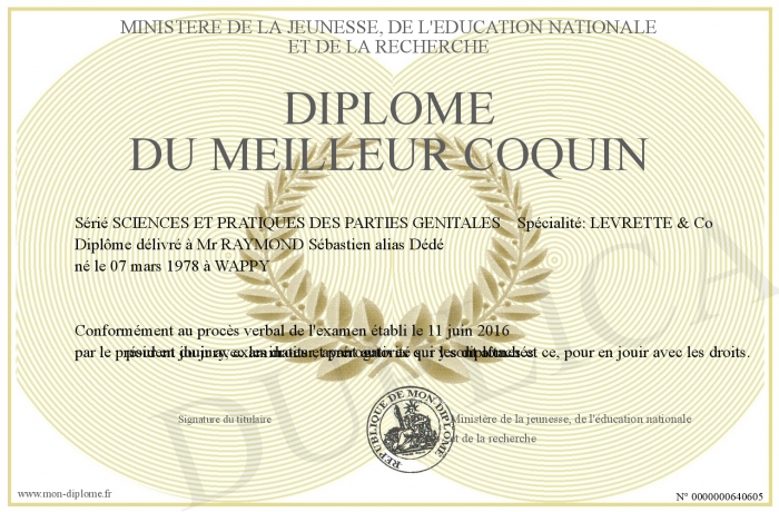 Envoyez par email votre Diplôme du meilleur coquin personalisé