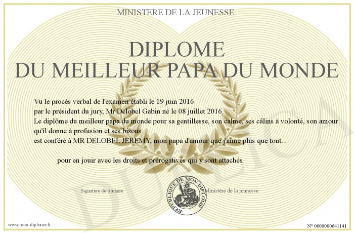 Envoyez par email votre Diplôme du meilleur papa du monde personalisé